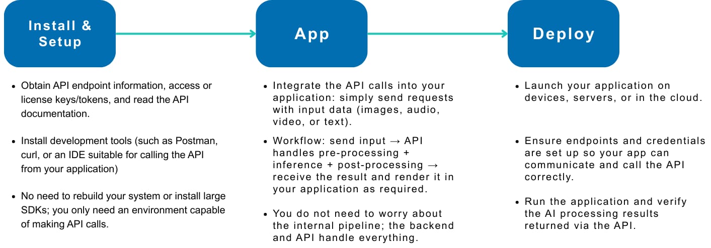The Open Source Edge AI Workflow architecture is designed to accelerate AI application development for edge platforms and accelerator cards, focusing on simplicity, efficiency, and integration via APIs. This modern workflow divides the process into practical stages, making it easy for developers to get started and deploy robust AI solutions with minimal friction.